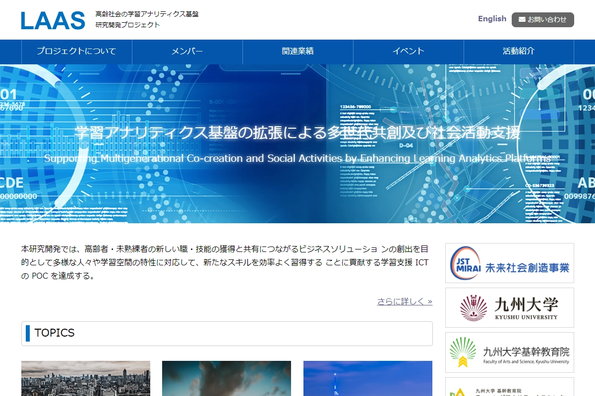 九州大学 高齢社会の学習アナリティクス基盤研究開発プロジェクトLAAS(ラーズ)のホームページを制作しました。