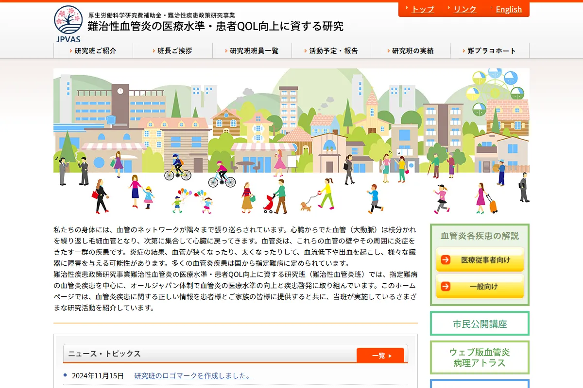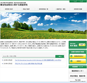 難治性血管炎に関する調査研究のホームページを作成、公開しました。