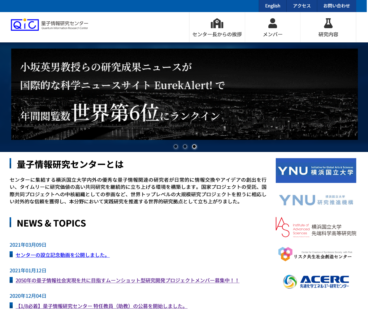 横浜国立大学量子情報研究センター様のホームページを作成いたしました。