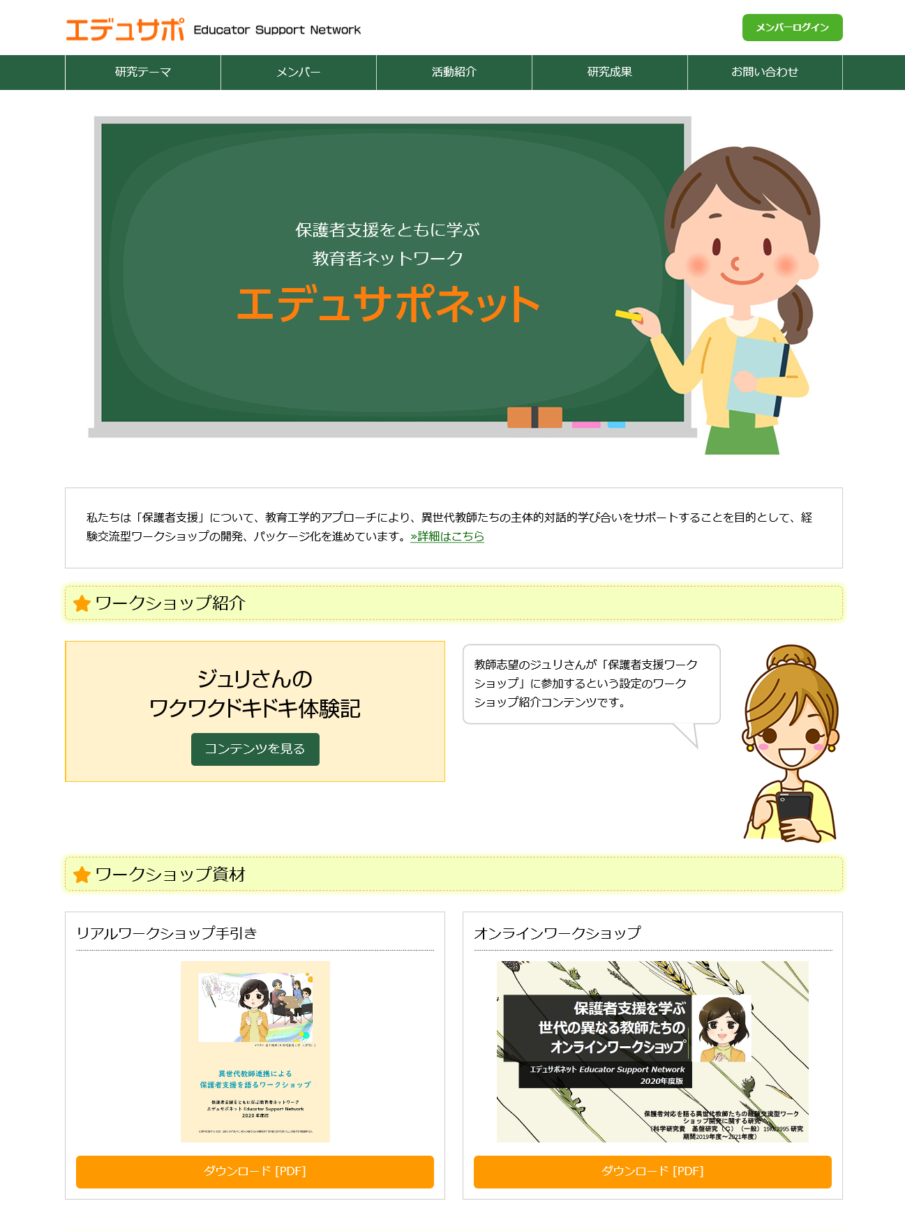 エデュサポネット Educator Support Networkのホームページを作成しました。