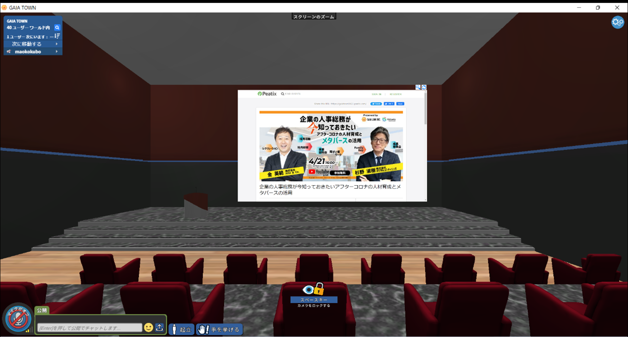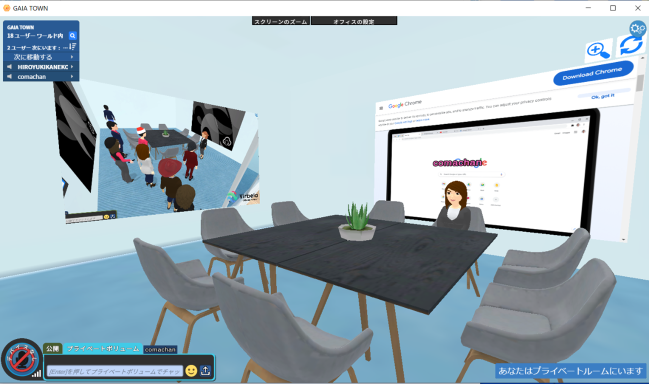 現在、H教育大学様の研究グループで、Virbelaの日本語版メタバース空間「GAIA TOWN(ガイアタウン)」にて、バーチャル研究会の実施をお手伝いしています。