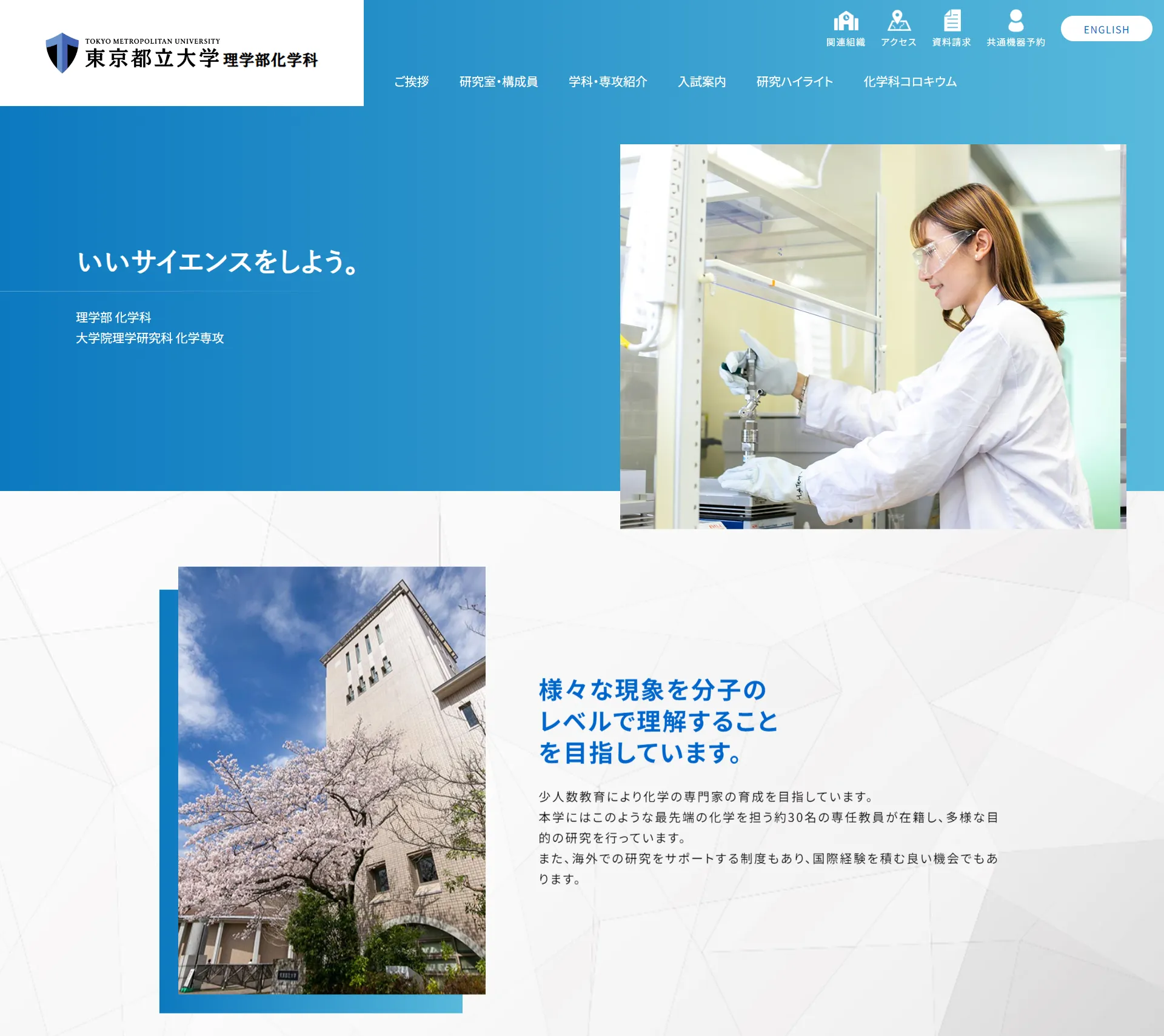 東京都立大学理学部化学科ホームページをリニューアル制作しました。